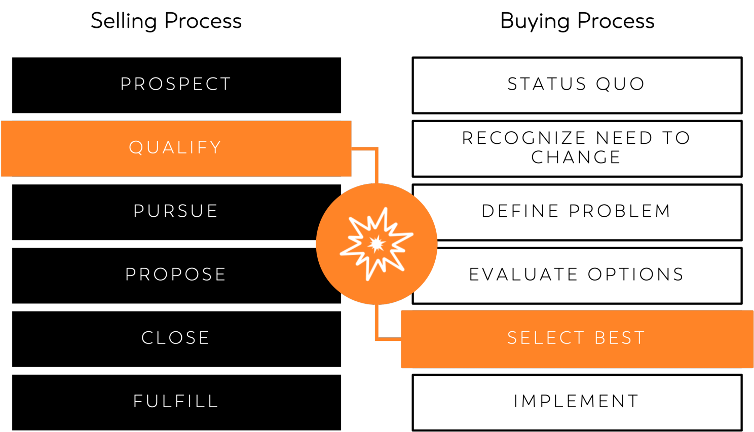 We often hear the term ‘RFP’ used interchangeably, as if it were the whole sales process and it’s easy to see why. From research we know that Buyers on average have completed 57% of their buying process when they first reach out to prospective providers. As the graphic below depicts, if the first contact you have with a buyer is at 'Select Best' or ' Evaluate Options', then the RFP process is the sale for you.